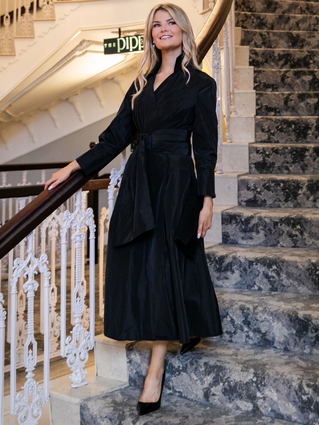 Kate & Pippa Penelope Taffeta Midi Dress In Black-Nicola Ross